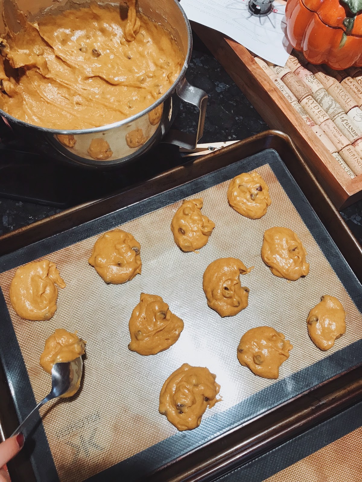 I hope everyone had the best Thanksgiving! We had such a nice Thanksgiving, even though it was SO cold all day. We just stayed inside and enjoyed time together with some bubbly and turkey! Before Thanksgiving, my sister and I made pumpkin chocolate chip cookies! They are SO good!
