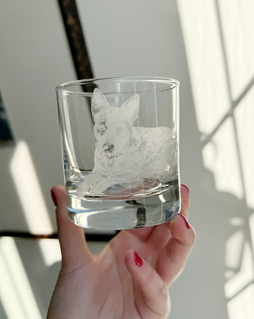 This one is a real gem. It's a simple rocks glass that is engraved with your pet. It's not printed on; it's truly engraved, so it will stand the test of time.