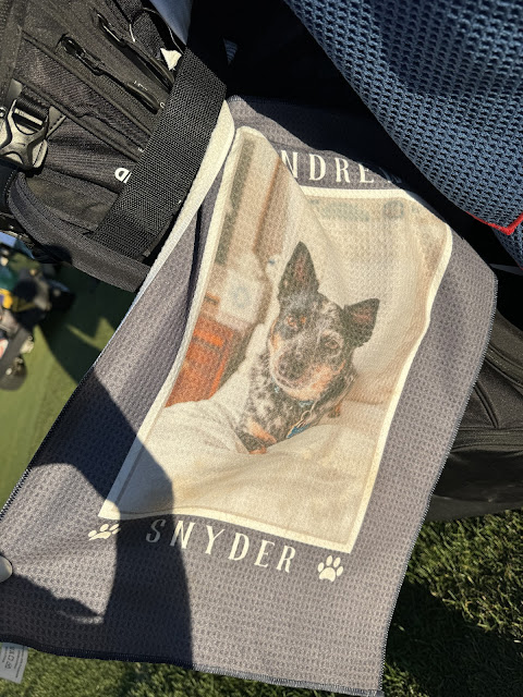 Starting off with one of the simpler items on the list, and one that doesn't take a crazy long time. This golf towel is affordable and adorable for anyone who loves golf and pets!